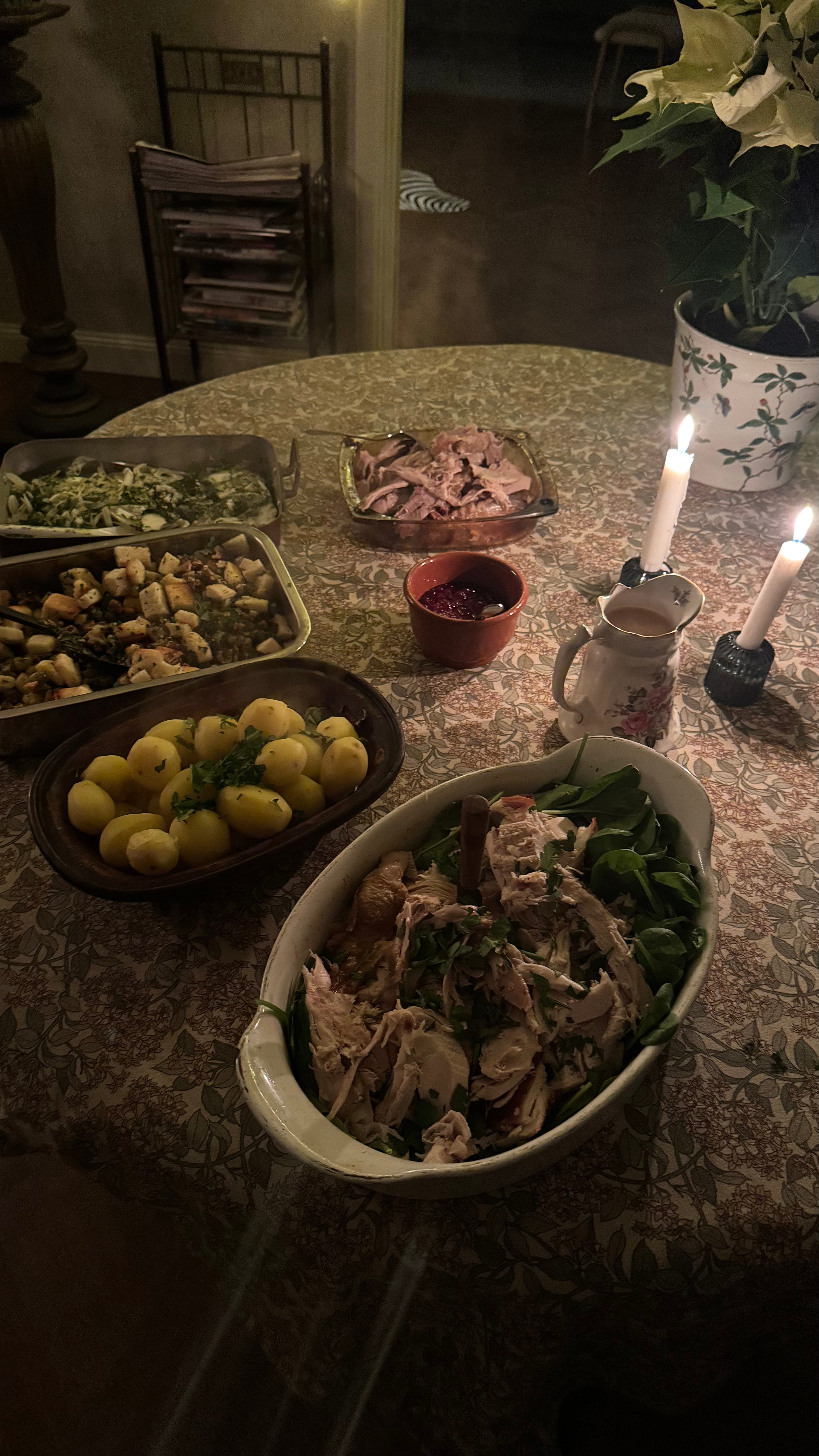 Men innan dess hade vi hunnit gå ett varv runt bordet och berätta vad vi var tacksamma för. Precis som vi upplevt på västkusten förvandlade detta en vanlig middag till något mer, en tacksamhetsritual som känns på djupet.